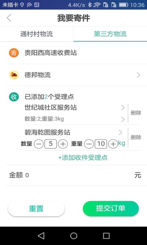 4.选择我要寄件,添加收件受理点,点击提交订单按钮即可完成寄件