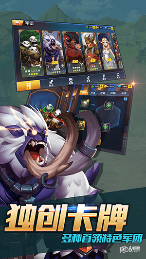 1、多样的卡牌角色可以供玩家选择,每个角色拥有不同的技能,玩家需要进行策略的阵容搭配;