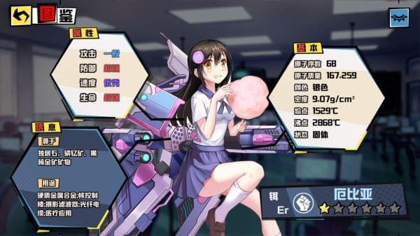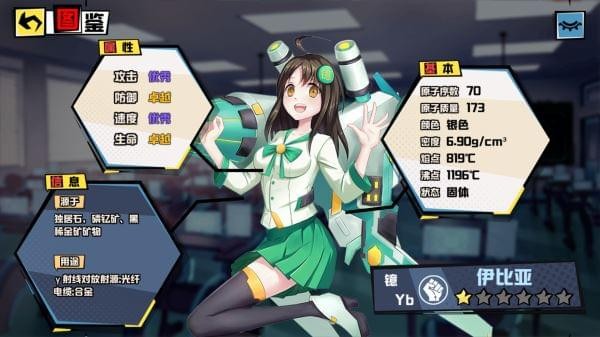 1、你高中时代的化学元素周期表就是游戏中的主角,它们将化身萌妹子陪你一起战斗;