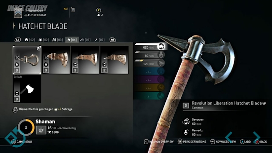 3、幅图的性能是可以在商店中查看的,除了基础性能之外,还可以用一系列的材料来怼这把战斧进行提升。