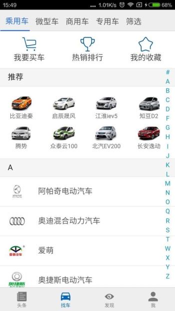 1、进入找车板块,可以看到不同品牌车型的市场价格,还能预约试驾;