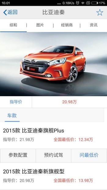 3、根据车辆喜好进行选择,查看市场售价,预约试驾