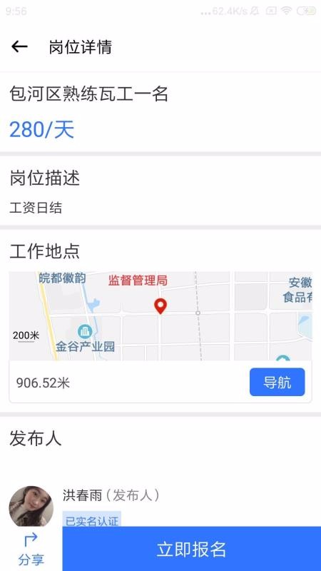 2、一键即可报名,参与岗位面试,面试成功之后即可开始工作;