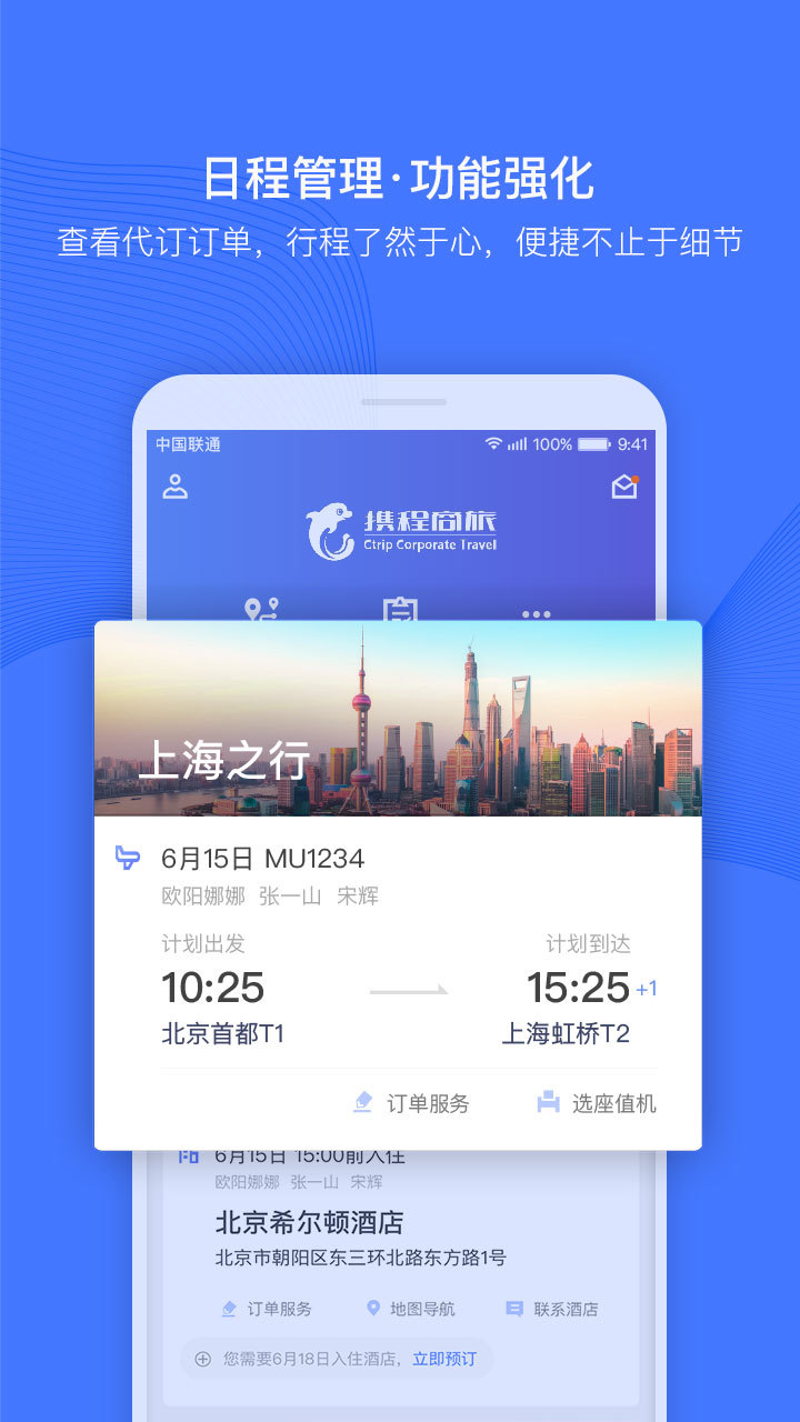 2、集审批系统、预订系统、结算系统于一体,业务范围涵盖机票、酒店、火车票、租车等服务,帮助企业降低商旅成本。