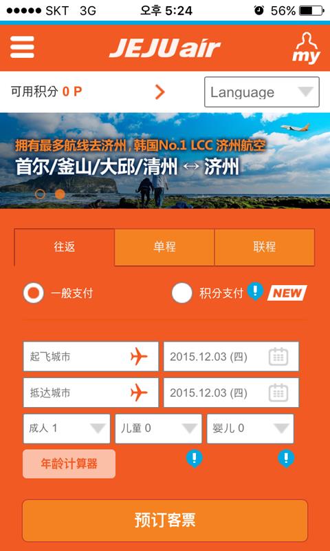 济州航空app是一款韩国领先济州航空全球性应用,利用济州航空app可享受搜索机票查询订票信息、网上登记等所需要的服务,济州航空app支持多种语言以及众多实用功能,为用户带来更多便捷。