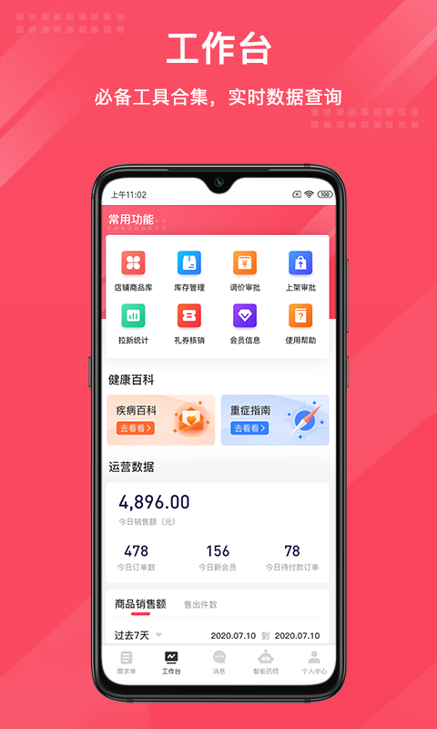智能药师是一款在线药店软件,用户能够在这款软件上购买药品,用户足不出户即可购买药物,这款软件还能帮助店家管理店铺,所有商品订单、库存管理、营销额等都能在软件上查看,有需要的朋友快来下载吧!智能药师app这个款软件相当于网上的药店,上面有当地的各个商家,如果自己需要买药的时候不想出门,或者不方便出门,就可以用这个去购买,让你可以尽快的买到自己想要的药物,买药的时候一定要按医生的嘱咐来买哦。