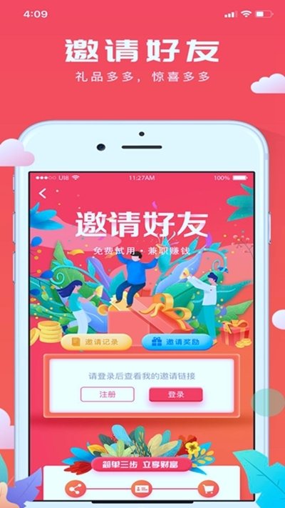 2、分享赚钱,邀请新用户得现金,无需退还,无需退还放心用;