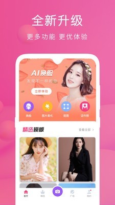 换脸秀秀是一款超级好用的拍照编辑神器,用户不仅可以在这里拍摄出好看的自拍照片,同时还可以在这里进行AI换脸功能呢,移花接木,简单易行,还有图片美化、AI抠图等功能,让你充分可以展现出自己的俏丽多姿,更有超多模板精选,让你可以任意挑选!换脸秀秀app通过AI将自己的所选图像的人脸融合生成到模版图上面的长相效果,轻松找出使您美丽/帅气的人脸,可以任意更换照片背景, 轻松发现让自己美丽帅气的模样。