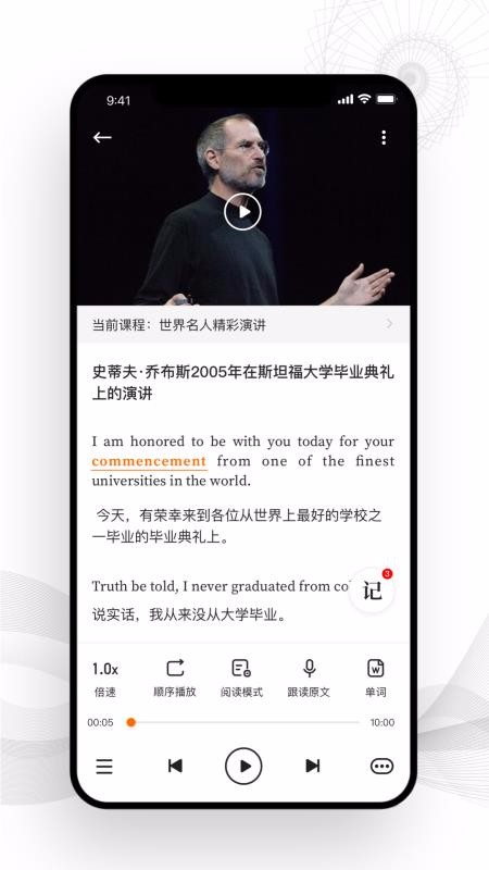 3、一键获取文稿,任何一个演讲视频都配置了完整版的文稿便于用户结合中英文一起学习;