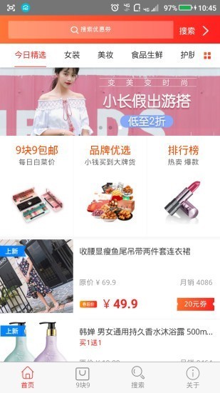 1.每天进入首页的时候第一眼可以看到今日新品,如果新品有优惠券的话可以立即领券;