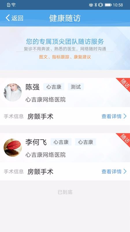 3、有提供健康随访的服务,能够直接查看健康随访信息,方便在线下了解身体恢复状况;