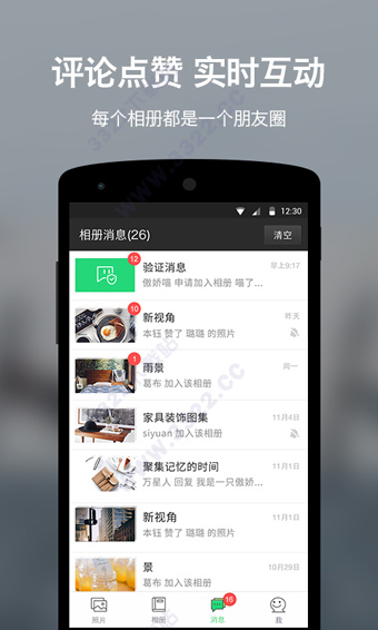 】1、共享相册:只需一人上传,邀请成员就能一起共享照片,实时进行