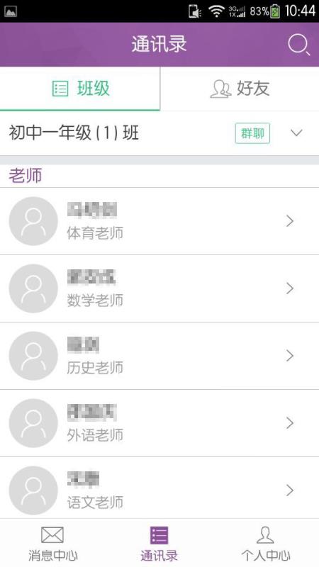 【通讯录】查看孩子班级老师、家长信息、加好友进行互动。