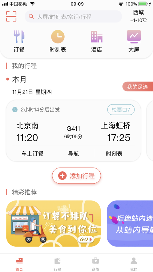 4.查看自己的行程安排,还能线上订票,线上订餐等等;