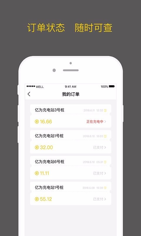 轻松开启电动汽车充电,无线支付,随时掌握支付情况;