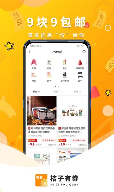 桔子有券购物平台是一款网购省钱服务平台,帮助用户随时购买9块9包邮商品,包含了女装、美妆、母婴、居家日用、美食和数码家电等商品,汇集了的商品类型多,价格比较实惠,质量有保障,可以智能筛选商品加购,实时更新爆款商品,让用户第一时间购买新品,快来下载使用吧!新人还有专享福利而且可以无门槛使用非常不错,双十一马上就要到了,小伙伴们快来本站下载桔子有券领取津贴礼包吧。