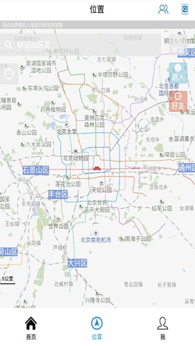 4.注册用户手机号码默认与手机设备绑定,输入手机号码即可查询手机定位信息。支持查看附近路人哦,可申请添加好友。