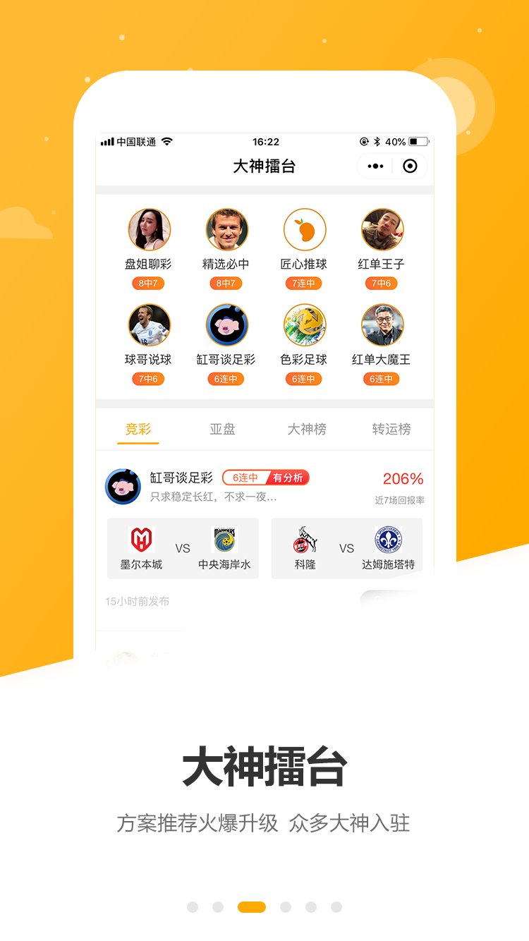 1、每天都有各个牛人助阵,为您提供更多的赛事数据参考信息;