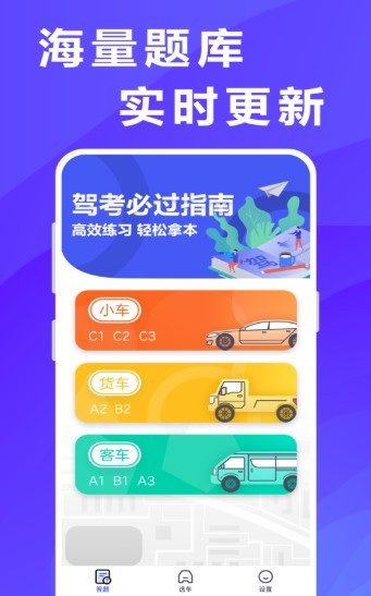 3.可以自由的选择驾考车型,选择相关对应的考试攻略习题;