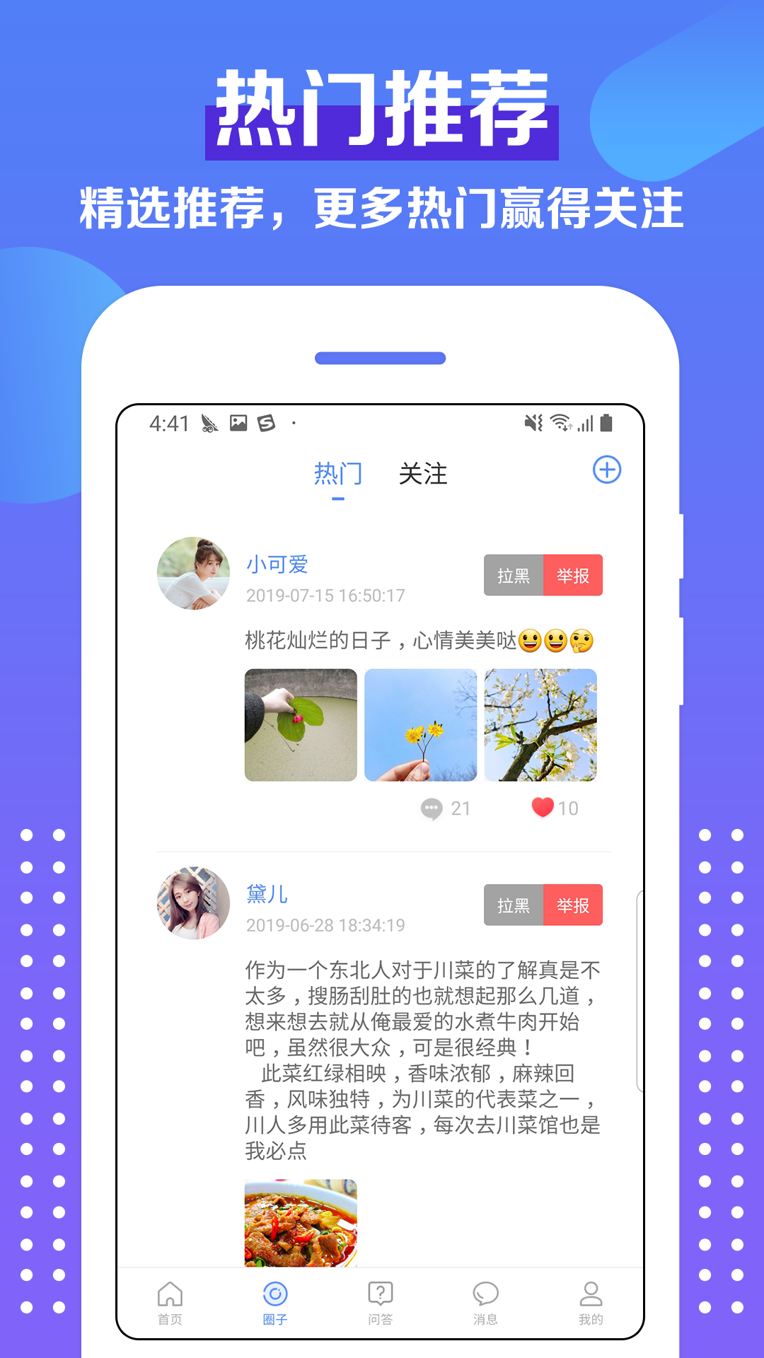 1.你可以点赞评论他人动态,举报、拉黑发布者;