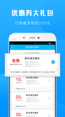 群体通APP为广大的用户开发的运动场馆预约服务软件,用户可以使用手机app进行在线预订,并可以享受到7折的优惠,同时还可以查看并报名相关的活动赛事,能够帮助用户在线订球场的平台,为用户提供多种运动项目,包括篮球、足球、羽毛球、乒乓球、跑步等运动项目,全面满足用户的不同运动需求。在线就就可进行运动预约,减少现场排队的时间。成功订预可免费领取优惠券,优惠券可以运动消费抵扣,经济又实惠。每天为您推荐社会资讯,实时了解最新社会资讯动态。需要的可以来下载群体通app进行使用。