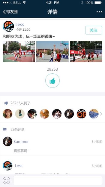 在“篮盟”,你可以主动地发现并结交周边的朋友,时刻关注他们的动态;你可以组建属于你自己的队伍,邀请你的好友加入;可以时刻关注你喜欢的队伍的动态,或直接加入你喜欢的队伍,与队友们并肩作战;你还可以主动地发起比赛,邀请其它队伍或好友参赛;可以时刻关注你喜欢的比赛的动态,或直接报名参加你喜欢的比赛。