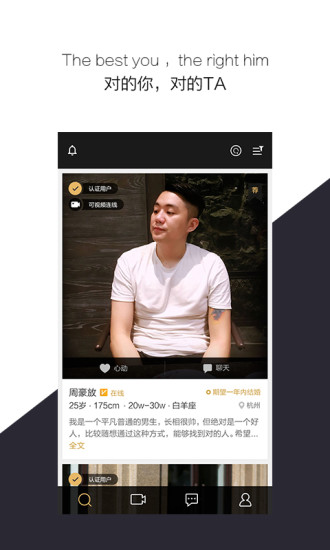 “通过豆瓣小组介绍来注册的,虽然认证比较繁琐一点,但是这样反而使用起来会很放心,用户也都是很真实,质量都很不错,比有缘网,花田,世纪佳缘的好多了,很多都是名校毕业,也有和我一样是海归国外回来的朋友”by-征婚相亲yy珍爱