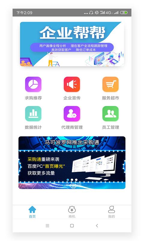 企业帮帮app是一款致力于帮助中小企业更高效率的获取客户的应用。企业帮帮app全面利用AI技术对于全网的流量,用户进行画像分析,把客户需要的产品及服务推荐给客户。从而帮助企业更低成本,更加快速的获得客户,并且帮助企业在获取客户的过程中,协助企业进行销售及获取客户的过程管理,采用先进成熟技术构建而成的一款好用的SAAS产品。