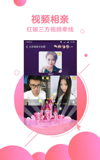 1、视频相亲:真人三方视频相亲,红娘视频帮你介绍对象,真实约会恋爱,真人视频杜绝照骗!