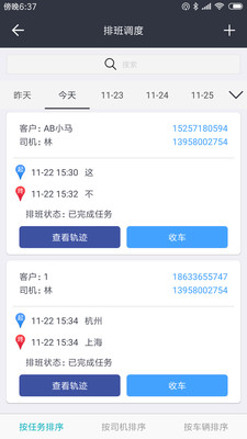 6)司机完成任务后,管理员可以在排班列表进行收车,将任务内容进行完善。后面进入财务结算环节。