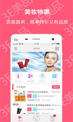 1.e美品,校园学生最喜欢的美妆购物app应用!nice界面风格+in的使用体验+top的商品资源,实体店购物不要忘了用3e美品去支付,膜膜哒爱你哦!