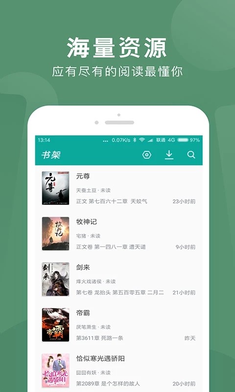 3. 实时更新推送,支持WIFI一键缓存,全本、连载小说随时随地享受。