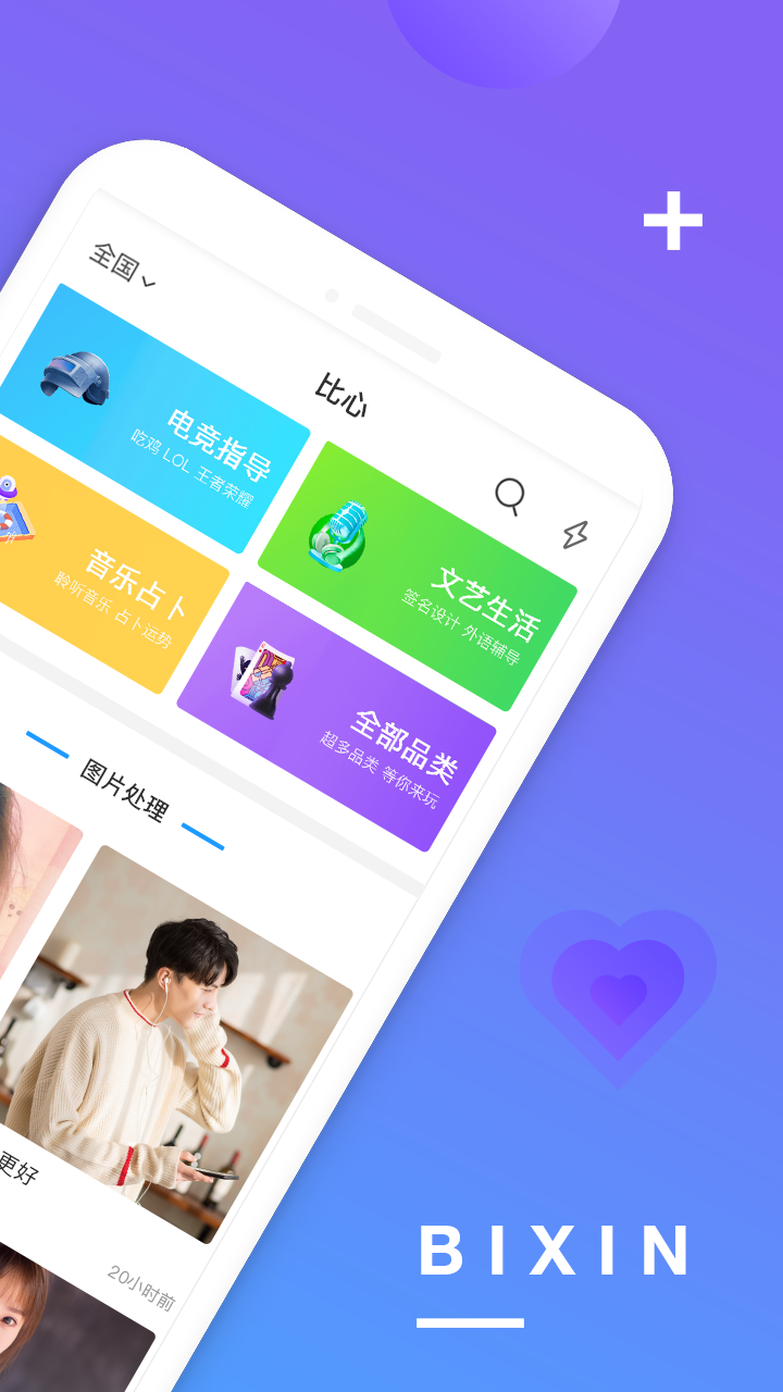 比心App_上汇聚了各个领域的高颜值大神,他(她)们通过专业的技能、优质的服务帮助用户练习游戏、辅导外