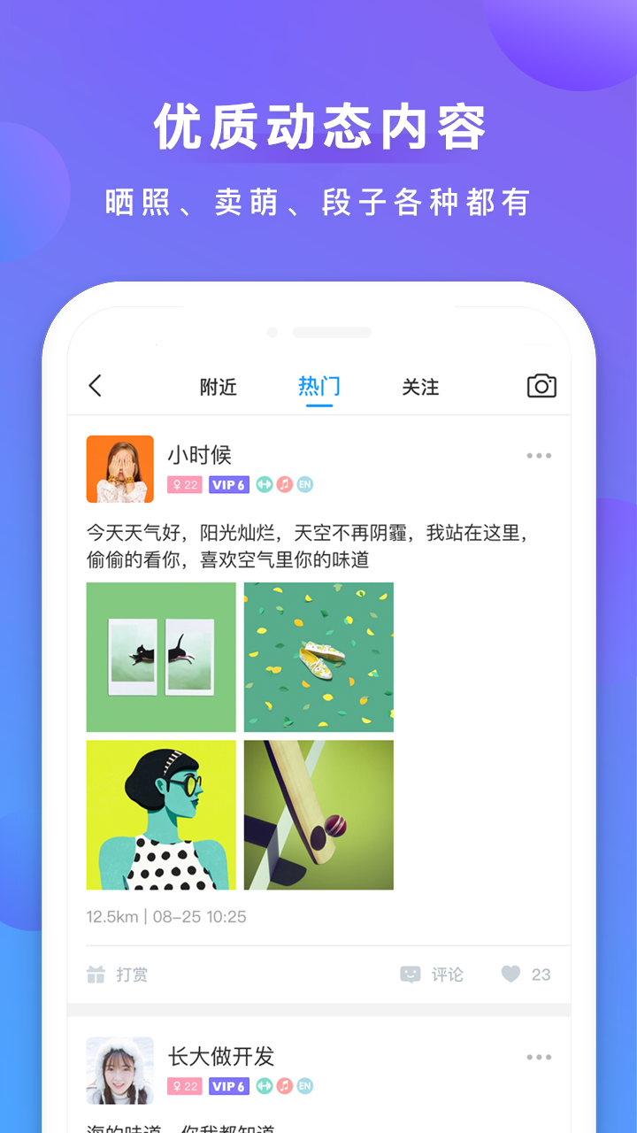 大神动态的算法推荐:在App首页“推荐“功能下,用户会接受到匹配自身喜好的大神动态,让用户随时随地发现心仪大神。