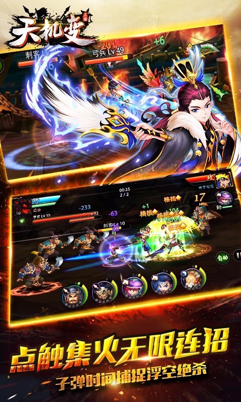 天机变首创技能连放,让玩家在战斗的同时,可以自主选择释放时间、释放角色、释放顺序并大招连击,加上华丽酷炫的4K超清画面显示,如同身临其境大片现场!一款十分热血的三国卡牌战斗手游,以三国为题材,从最初的张角预言开始,还原令人热血沸腾的奇幻三国,采用先进的技术打造极致硬核的三国大陆,各种炫酷华丽的技能特效渲染出最热血激情的三国乱世,海量的上古阵法,多样的英雄阵容搭配,一场战斗就是一场脑力的交锋,完善的游戏系统,多样的玩法模式还有温馨的家园系统,给你极具沉浸感的三国战斗体验!