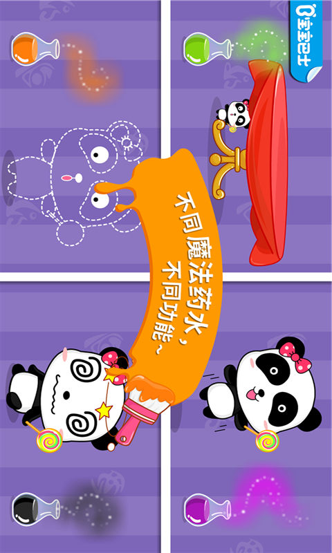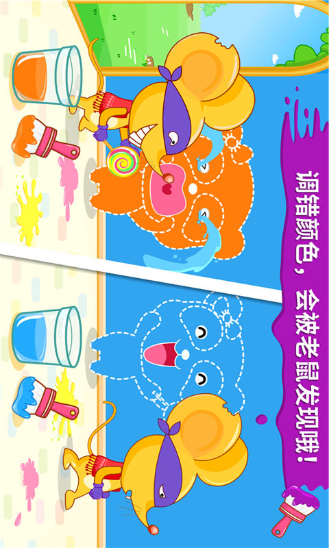 宝宝调色屋是一款帮助宝宝认识到颜色的变化的早教游戏。宝宝巴士宝宝调色屋游戏中,小朋友们可以利用不用颜色混合变色的办法来帮助熊猫妙妙的棒棒糖不被老鼠抢走。宝宝调色屋将会从游戏出发,在不知不觉中就认知到颜色混合后的变化,赶紧来下载试一试吧。