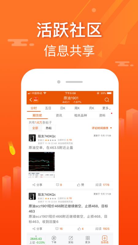 下载安装在手机上,随即打开就能查看今日的市场行情