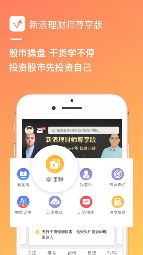 新浪理财师app,隶属于新浪时金旗下品牌,为满足1亿股民的投资服务需求,新增金融研究所,力邀第 一财经特邀嘉宾王健入驻,为广大投资者朋友提供专业高效的投资知识服务。