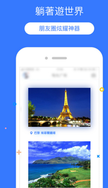 躺着游世界:你也可以将当前位置改成纽约巴黎,然后在微信朋友圈或者微博发一张照片,在朋友面前炫耀一把。赶快安装体验吧!