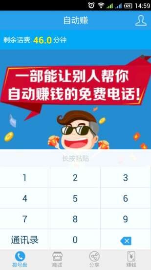 自动赚app是一款由商家帮你出钱的免费电话!不需投入一分钱却可通过发展粉丝、点广告、做任务等而轻松赚到钱,并且你还可从发展的多级粉丝中分享抽取他们所赚的钱!从而让你实现——自动赚钱!