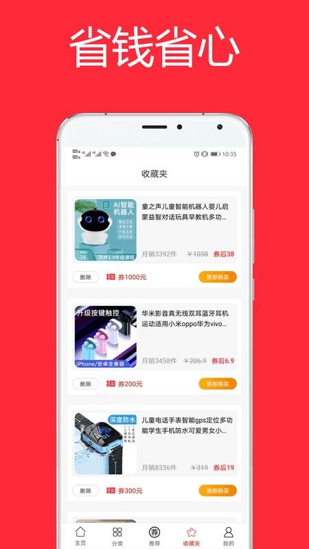 聚省钱是一款超好用的网上购物平台,聚惠省钱,精挑细选,抄底折扣,省钱省心,海量优惠券每天不限量免费领取,省钱购物一步到位,在这里找到海量的优质购物资源,更有心动折扣。让购物更加省心省力,非常的实用。聚合各大购物平台优质产品,提供大额优惠券领取入口,让购物更省心,更省钱。还特出活动专题板块,折扣力度排序等实用工具,让您更快更便捷的找到称心的优惠券,感兴趣的朋友不要错过,快来下载体验吧。