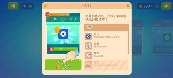 1、升级和进化:每个Evo品种都有独特的技能,例如跳跃或滑坡。 这些属性可以升级,以使您的Evo更加强大。