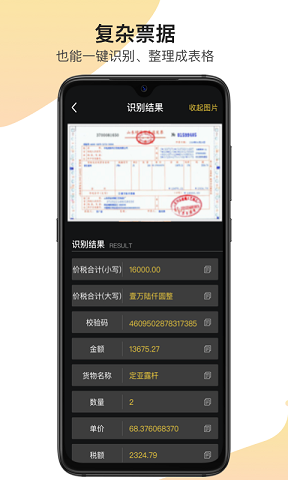 发票:对通用机打发票能有效识别各项内容,供你复制使到其他地方使用