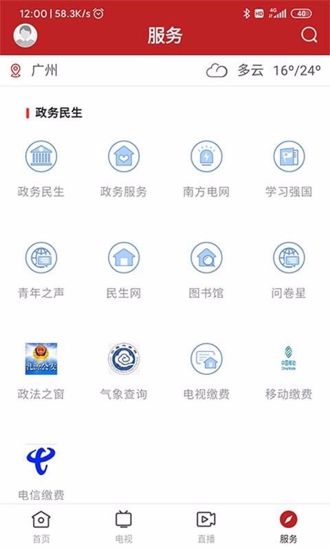 4、能够在线观看广东省的各个电视台节目,手机充当电视;