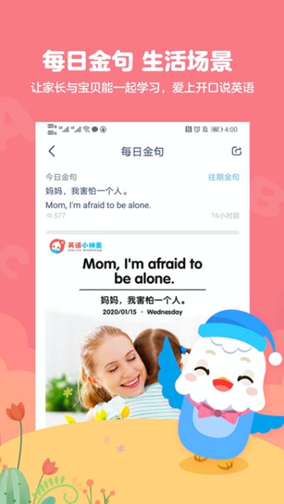 英语小神童App是一款帮助0—6岁的用户进行的英语启蒙教育平台,针对不一样的年龄分布情况在线去开发潜力,让小孩从小就能逐渐掌握小孩子的语言开发潜力。是采用综合的兴趣课程去帮助小孩子拥有足够兴趣,采用中外老师互动在线去进行教育,相关功能是十分优质。