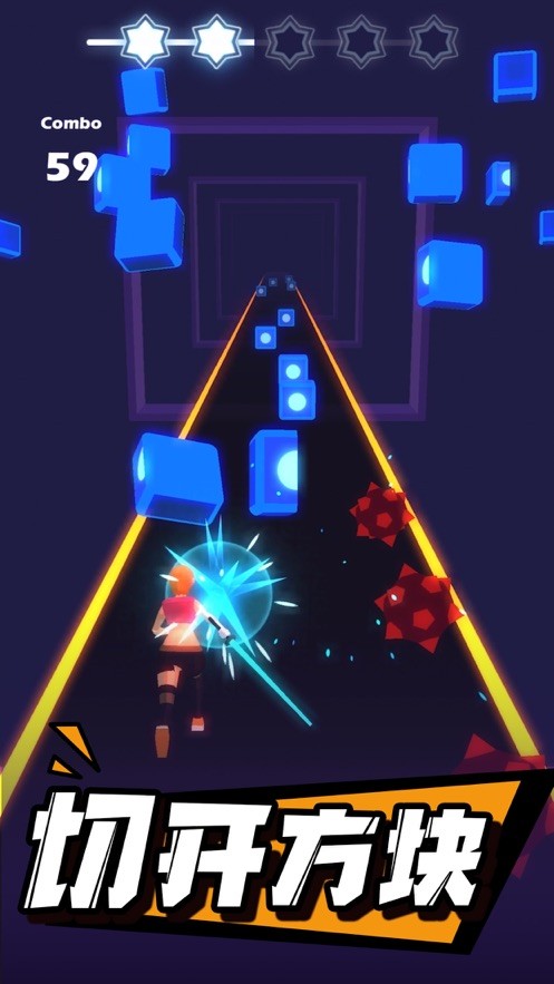 手机游戏的视觉冲击性感很强,酷炫的动画场景,把歌曲打导致一场奇特的赛博朋克之行。音乐全部免费,进行副本挑战每日任务,全自动开启全世界最受欢迎、最动感的音乐专辑。一个不漏水的切割方块,妥妥的踩着音乐节拍,跨越你的敌人,变成下一个节奏大师。