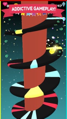 螺旋小球是一款好玩有趣的休闲闯关游戏,操作小球在游戏中跳跃,在这个螺旋塔中灵活跳跃,躲避危险的障碍物,从下到上的跳跃,成功的到达螺旋塔的底部,即可完成游戏关卡的挑战,充满趣味的休闲玩法,游戏操作也是非常简单,只需要滑动手指,对应方向即刻改变小球的颜色,即可向下破坏砖块,一步步走下去,玩的更远,注意你上面的变化,那些看不到的地方才是最险恶的,你随时都可能被陷入险境之中。台阶有黑白两色,你只能踩着黑色前行,如果触碰到了红色,那就不好意思了,游戏结束,感受另类的球球挑战,让球球蹦起来飞跃吧。