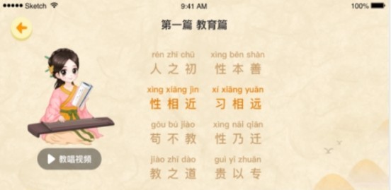 4、正文由白云老师朗读,部分启蒙国学可选儿童朗读,译文也有语音,对儿童早教有帮助。