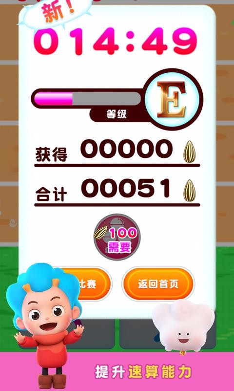 游戏途中随机生成算式,不断学习提升孩子运算能力;