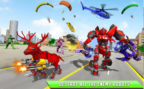 机器沙雕鹿模拟器是一款酷炫的动作格斗类游戏,控制你的机械鹿去保护城市,邪恶的敌人随时都会发起进攻,要在第一时间制止灾难的发生,只需要升级装备击败更强的入侵者。后期的难度会提升很多,自己的实力也要及时去跟进才能抗衡。